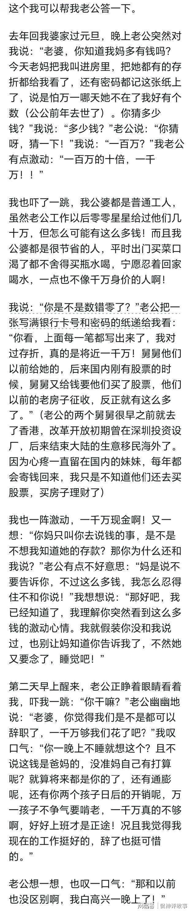 如果是真的,我有点心疼你妈啊。有钱不享受生活,存起来留给孩子。人生几十年很短,住上好房子,吃好的,用好点,一年旅游几次,钱用来改善生活,享受幸福才是正确的用法,又不是没钱,不是么。